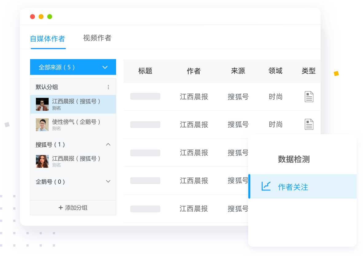 使用场景:自媒体平台作者动态信息监测 全平台作者数据实时监测,为创作提供灵感
