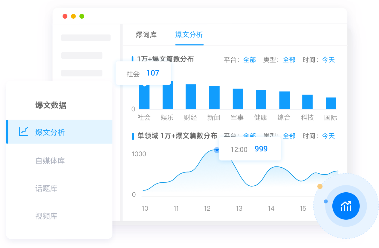 使用场景:各大平台内容数据分析、为内容创作提供数据参考 实时分析各大平台图文、视频爆文推荐机制,洞察爆文的秘密
